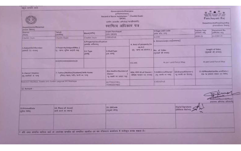 हरियाणा अवधारणा को आगे बढ़ाते हुए, पंचायती राज मंत्रालय, भारत सरकार ने भारत के ग्रामीण लोगों को अपनी आवासीय संपत्तियों के दस्तावेज के अधिकार प्रदान करने के उद्देश्य से स्वामित्व की अवधारणा की ताकि वे आर्थिक उद्देश्यों के लिए अपनी संपत्ति का उपयोग कर सकें।
