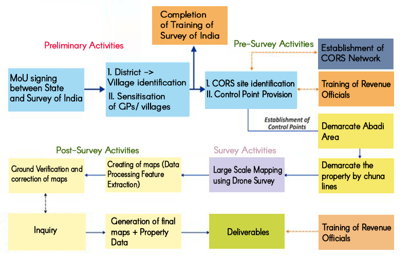 इसका उद्देश्य ग्रामीण लोगों को अपनी आवासीय संपत्तियों का दस्तावेजीकरण करने का अधिकार प्रदान करना है ताकि वे अपनी संपत्ति का उपयोग आर्थिक उद्देश्यों के लिए कर सकें। यह योजना ड्रोन तकनीक का उपयोग करके ग्रामीण आबादी वाले क्षेत्रों में भूमि पार्सल का सर्वेक्षण करने के लिए है। सर्वेक्षण 2020-2025 की अवधि में चरणबद्ध तरीके से देश भर में किया जाएगा। यह योजना केंद्रीय क्षेत्र की योजना के रूप में प्रस्तावित है।